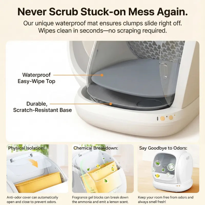Say goodbye to scooping and smells. Smart sensors automatically clean, and dual odor control keeps your home fresh every day.
